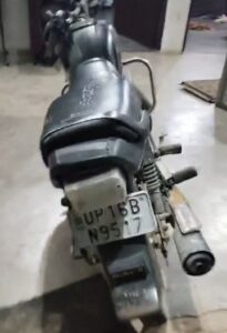 पीड़ित के घर पर खड़ी आरोपियों की बाइकपीड़ितो के घर पर पड़ा आरोपियों का तमंचा