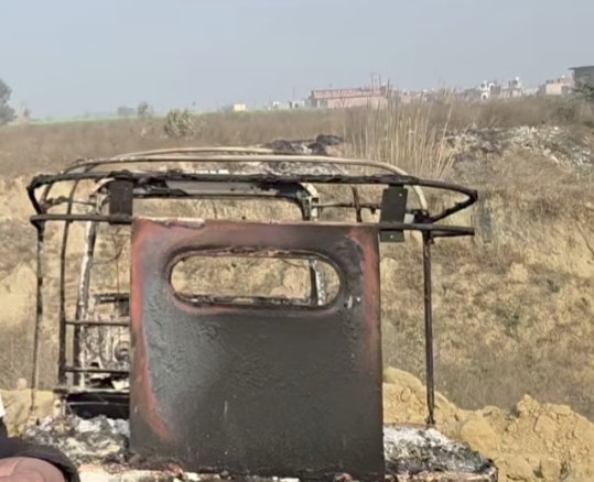 लोनी ट्रॉनिका सिटी औद्योगिक क्षेत्र से सटे जंगल में जले ऑटो में मिला नर कंकाल, हत्या कर साक्ष्य मिटाने की आशंका
