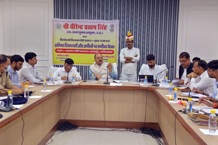 गाजियाबाद। महात्मा गांधी सभागार, कलेक्ट्रेट में वीरेन्द्र प्रताप सिंह, सूचना आयुक्त, उत्तर प्रदेश की अध्यक्षता में आरटीआई के तहत मांगी जाने वाली सूचनाओं की लम्बित शिकायतों और अपीलों की समीक्षा बैठक आहूत हुई। मुख्य विकास अधिकारी अभिनव गोपाल ने वीरेन्द्र प्रताप सिंह, सूचना आयुक्त को पुष्प गुच्छ भेंट कर स्वागत किया। इसके साथ ही जिला प्रशासन के अधिकारियों द्वारा सभी अतिथियों को स्वागत किया गया।