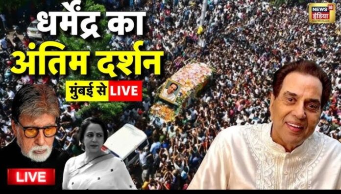 धर्मेंद्र का अंतिम संस्कार मुंबई के विले पार्ले स्थित पवन हंस श्मशान घाट में हुआ। पूरा देओल परिवार, रिश्तेदार, मित्र और अनगिनत चाहने वाले नम आँखों से उनकी अंतिम यात्रा में शामिल हुए।