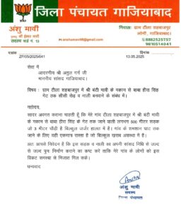 जिला पंचायत सदस्य अंशु मावी ने सांसद अतुल गर्ग को लिखा पत्र