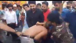 मेरठ। एक युवक की सदर बाजार के बीच में जमकर धुनाई की गई। युवक एक युवती से मोबाइल छीनकर भाग रहा था। भीड़ ने उसको पकड़ लिया फिर जमकर धुनाई करने के बाद आरोपी अरमान नामक युवक को पुलिस के हवाले कर दिया।