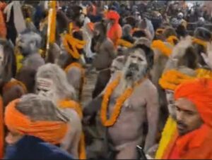 प्रयागराज । महाकुंभ 2025 के पहले ‘अमृत स्नान’ के लिए प्रशासन द्वारा सभी तैयारियां पूरी कर ली गई हैं। पहला अमृत स्नान मकर संक्रांति पर 14 जनवरी, दूसरा मौनी अमावस्या पर 29 जनवरी और तीसरा वसंत पंचमी पर 12 फरवरी को होगा। सोमवार (13 जनवरी 2025) को प्रयागराज में संगम तट पर लाखों श्रद्धालुओं ने आस्था की डुबकी लगाई। सुबह 9:30 बजे तक ही लगभग 60 लाख लोग स्नान कर चुके थे। महाकुंभ का पहला अमृत स्नान (शाही स्नान) रात 12:00 के बाद से ही शुरू हो गया। संत महात्मा हाथों ने त्रिशूल आदि हथियार लेकर संगम की ओर हाथी घोड़े पर सवार होकर निकल पड़े बड़ा ही मनमोहक दृश्य कुंभ क्षेत्र में बना हुआ है।