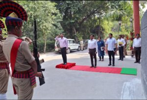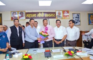 प्रमुख सचिव को पुष्प गुच्छ भेंट कर स्वागत करते हुए जिले के उद्यमी