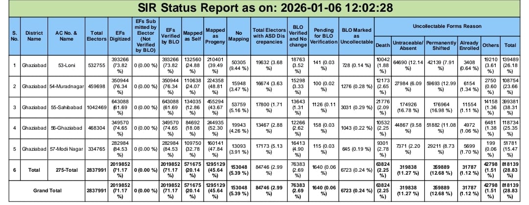 कुल मिलाकर गाजियाबाद जनपद में लगभग 29.57 प्रतिशत मतदाता सूची से बाहर हुए, जो पूरे जिले के लिए गंभीर चिंता का विषय बन गया है।
