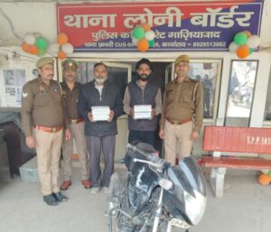 थाना लोनी बॉर्डर पुलिस द्वारा शुक्रवार को लूट/चोरी के अभियोग में वांछित 2 अभियुक्त गिरफ्तार, कब्जे से लूट के 39100/- रुपये व घटना में प्रयुक्त 1 मोटरसाइकिल तथा चोरी का 1 मोबाइल फोन बरामद