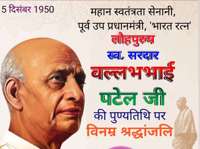 15 दिसंबर का दिन भारतीय इतिहास में गहन भावुकता और गर्व के साथ स्मरण किया जाता है। इसी दिन भारत के महान सपूत, लौह पुरुष सरदार वल्लभभाई पटेल की पुण्यतिथि मनाई जाती है। यह केवल एक नेता की पुण्यतिथि नहीं, बल्कि उस दृढ़ संकल्प, त्याग और राष्ट्रभक्ति की स्मृति है, जिसने आज के अखंड भारत की नींव रखी।