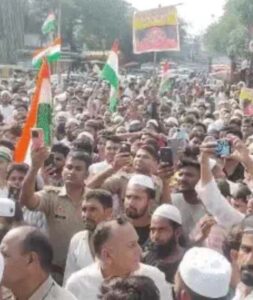 रविन्द्र बंसल प्रधान संपादक /जन वाणी न्यूज़ मेरठ। पश्चिमी उत्तर प्रदेश में जूना अखाड़े के महामंडलेश्वर यति नरसिंहानंद द्वारा पैगंबर मोहम्मद पर विवादित बयान से उठा बवाल थमने का नाम नहीं ले रहा है। सोमवार को मेरठ में इसके विरोध में करीब 5 हजार लोगों ने सड़क पर उतर कर प्रदर्शन किया। आरोप है कि इस दौरान प्रदर्शनकारियों ने पुलिस के रोकने पर पत्थर भी फेंके। इसके बाद पुलिस ने आवश्यक बल प्रयोग कर प्रदर्शनकारियों को खदेड़ा। इस पत्थर बाजी में कोई घायल नहीं हुआ है। दूसरी और मुरादाबाद से सपा सांसद रुचि- वीरा ने कहा पैगंबर मोहम्मद पर टिप्पणी करने वाले को ऐसी सजा मिलनी चाहिए की नजीर बन जाए। मुरादाबाद सांसद ने यति नरसिंहानंद के विरुद्ध राष्ट्रद्रोह का मामला दर्ज करने की मांग की है। आगरा में मुस्लिम समाज की महिलाओं द्वारा कलेक्ट्रेट पर जोरदार प्रदर्शन किया गया। महिलाओं के हाथों में पोस्टर थे जिन पर लिखा था पैगंबर की शान में गुस्ताखी करने वालों को फांसी हो। दूसरी और यति नरसिंहानंद के समर्थन में गाजियाबाद व मेरठ में हिंदू संगठनों ने भी प्रदर्शन किया और मांग की की यति नरसिंहानंद को जेड प्लस सुरक्षा प्रदान की जाए। हिंदू संगठन के कार्यकर्ताओं का कहना था कि यति नरसिंहानंद 3 दिन से लापता है पुलिस उनका कोई पता नहीं बता रही है। बताया जा रहा है कि मेरठ में निकले गए जुलूस में बच्चों को आगे कर दिया गया था। इसके बाद एक सभा का आयोजन किया गया विभिन्न इलाकों से लोग नारेबाजी करते हुए सभा स्थल तक पहुंचे। प्रदर्शनकारी मुस्लिम समुदाय के लोगों के हाथों में तिरंगा झंडा था। सभा में मुस्लिम समुदाय के लोगों द्वारा सर्वसम्मति से निर्णय लिया गया कि यदि नरसिंहानंद को गिरफ्तार कर सजा नहीं दिलाई गई तो व्यापक स्तर पर आंदोलन चलाया जाएगा। मुस्लिम समाज बड़े स्तर पर प्रदर्शन कर अपना आक्रोश दिखाएगा। मेरठ के एसपी देहात राकेश कुमार मिश्रा ने बताया की अन्य स्थानों की तरह मंडली में भी जुलूस निकल गया था इसमें बच्चों को आगे करके लोग जुलूस निकल रहे थे। एक तरह से माहौल बिगड़ने की कोशिश की जा रही थी। इसके लिए पुलिस बाल को मौके पर लगाया गया था। पुलिस ने प्रदर्शन कर रहे लोगों को रोका इस दौरान पत्थर चले या नहीं इसकी जांच कराई जा रही है।सड़क पर जुलूस निकालते मुस्लिम समुदाय के लोग