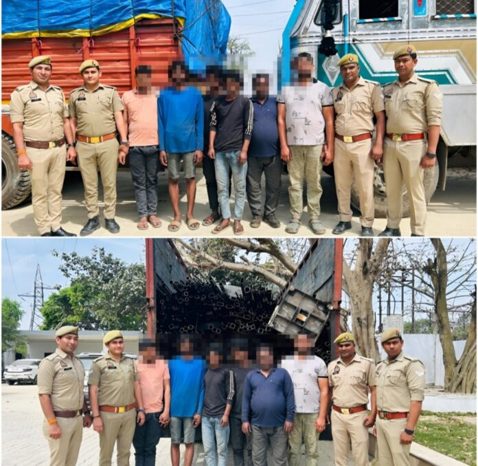 गाजियाबाद । कमिश्नरेट के अंतर्गत थाना लिंक रोड पुलिस ने बड़े पैमाने पर चल रहे लोहे की चोरी और कबाड़ के अवैध कारोबार का पर्दाफाश किया है। पुलिस ने चेकिंग के दौरान छह आरोपियों को गिरफ्तार कर उनके कब्जे से टाटा कंपनी का चोरी किया गया करीब 10,730 किलोग्राम (10.73 टन) लोहा, इलेक्ट्रॉनिक कांटा, अन्य धातु तथा 8 हजार रुपये नकद और दो ट्रक बिल्टी बरामद की है। बरामद माल की अनुमानित कीमत लगभग 10 लाख रुपये बताई जा रही है।